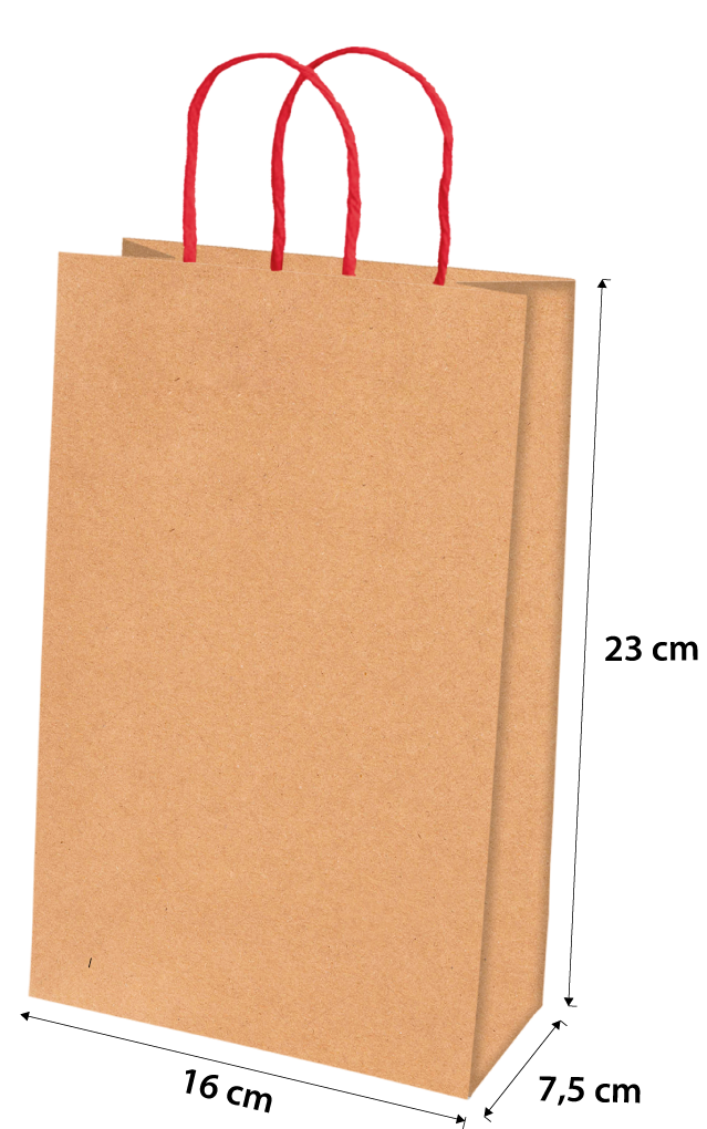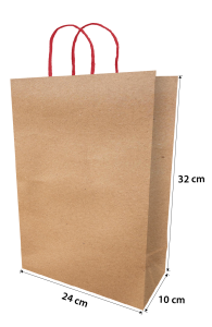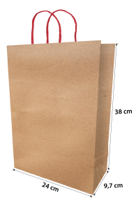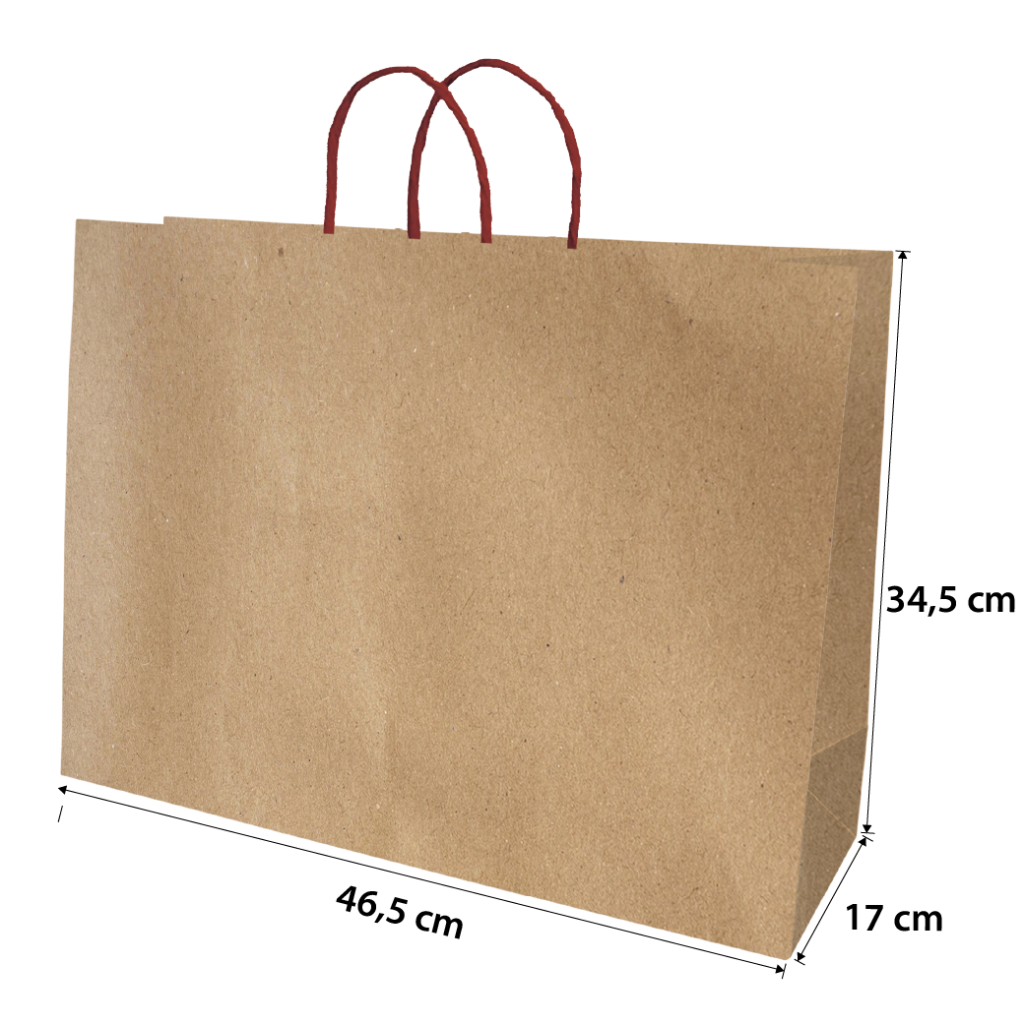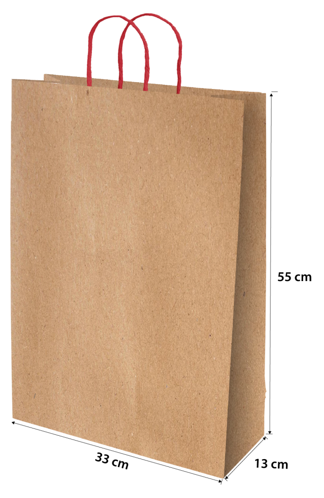 Bolsas ecológicas en papel Kraft extensible de 85 gramos, con manijas de papel kraft o color.